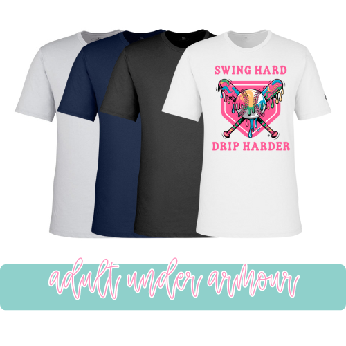 Under Armour Logo is on the sleeve & the neck area of the back.