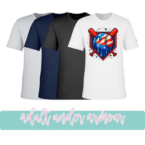 Under Armour Logo is on the sleeve & the neck area of the back.